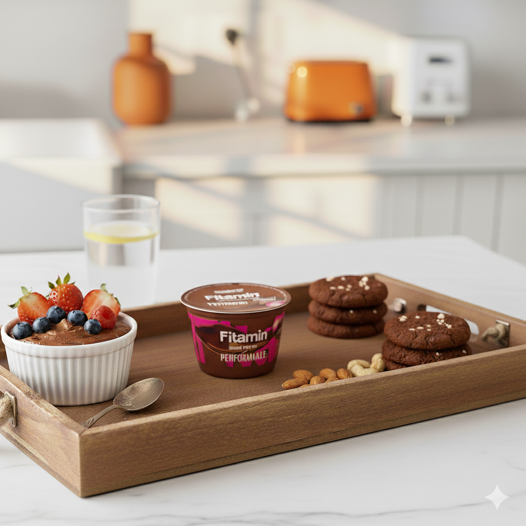Feel satisfied with 24g of protein in Fitamin® high-protein dessert and stay powered with smart carbs, fibre, and cacao antioxidants. Freshly made in small batches, low in sugar, with no unnecessary preservatives.